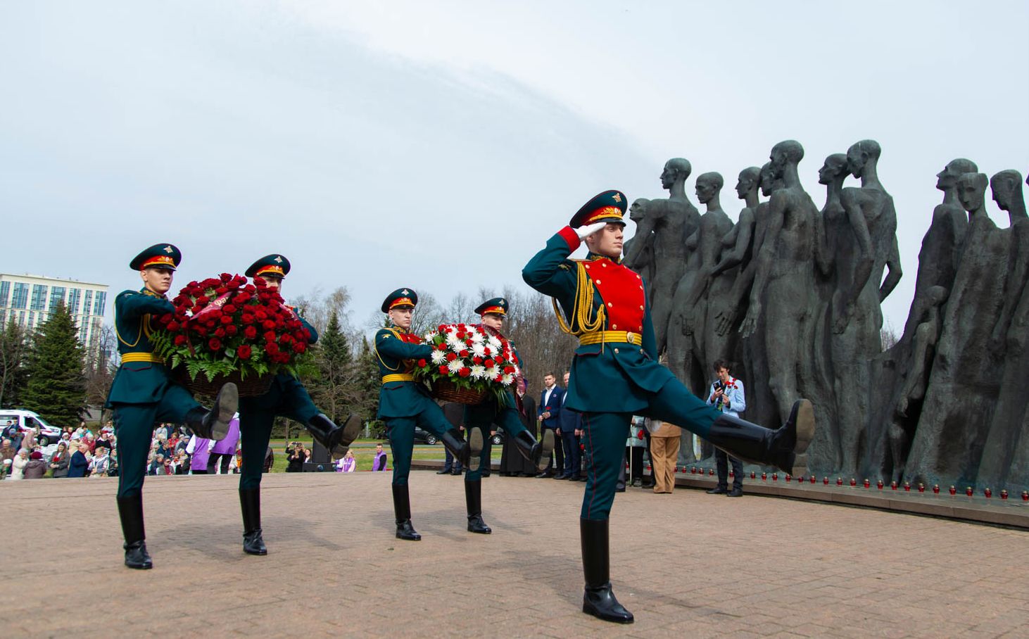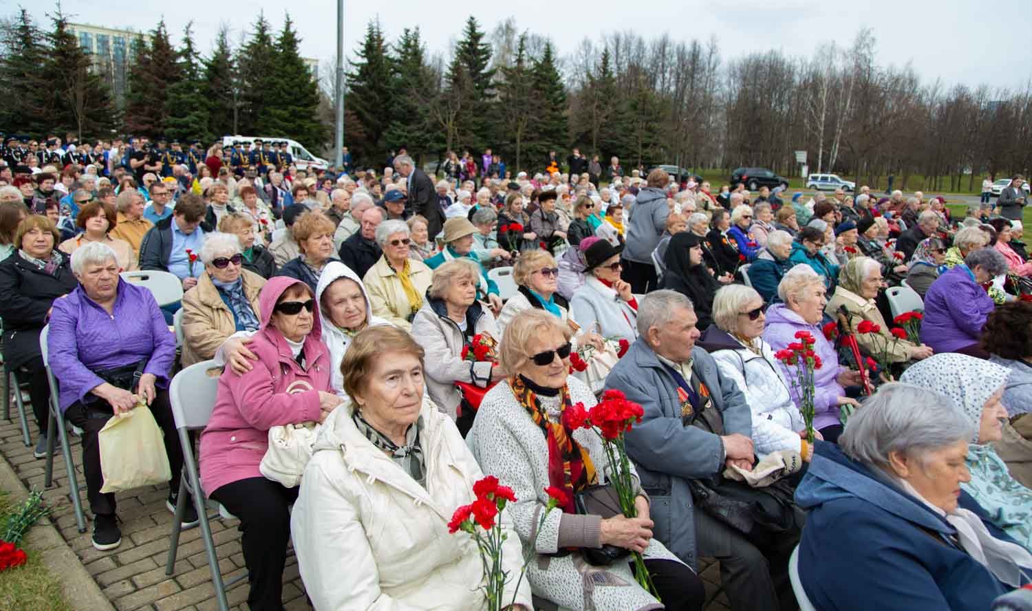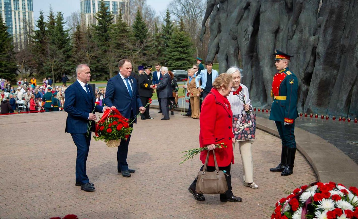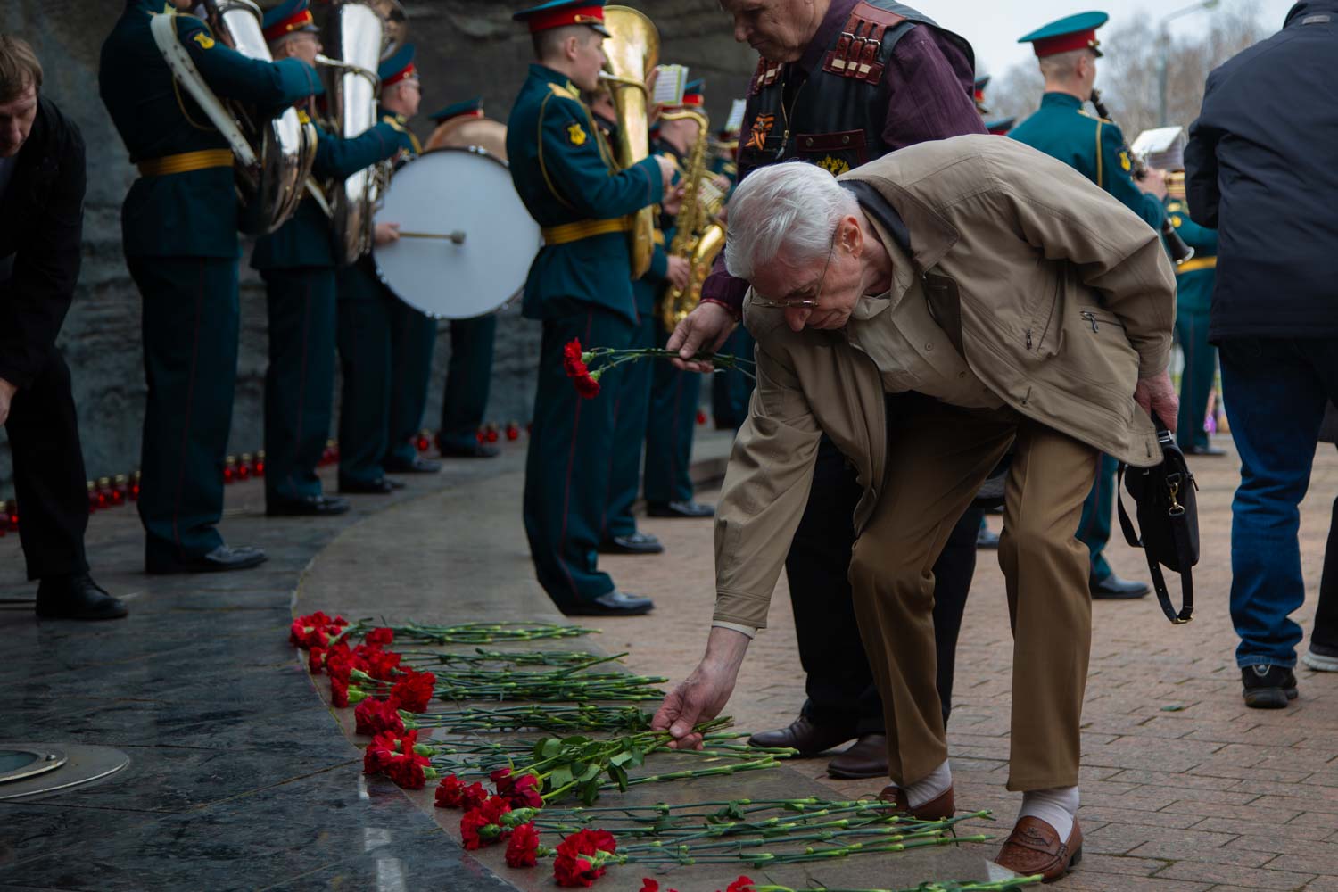 У монумента «Трагедия народов» на Поклонной горе собрались бывшие несовершеннолетние узники фашизма и их родственники, ветераны, представители органов власти и общественных организаций, кадеты, юнармейцы.