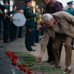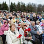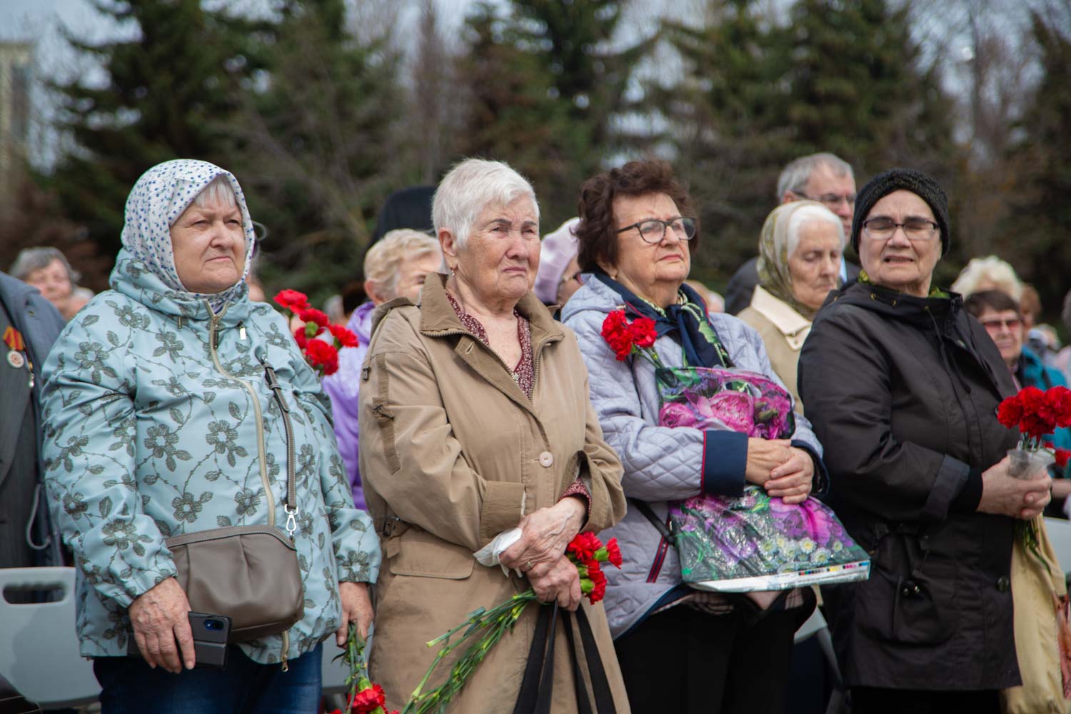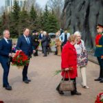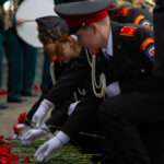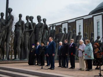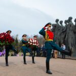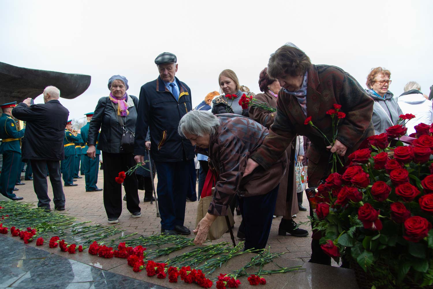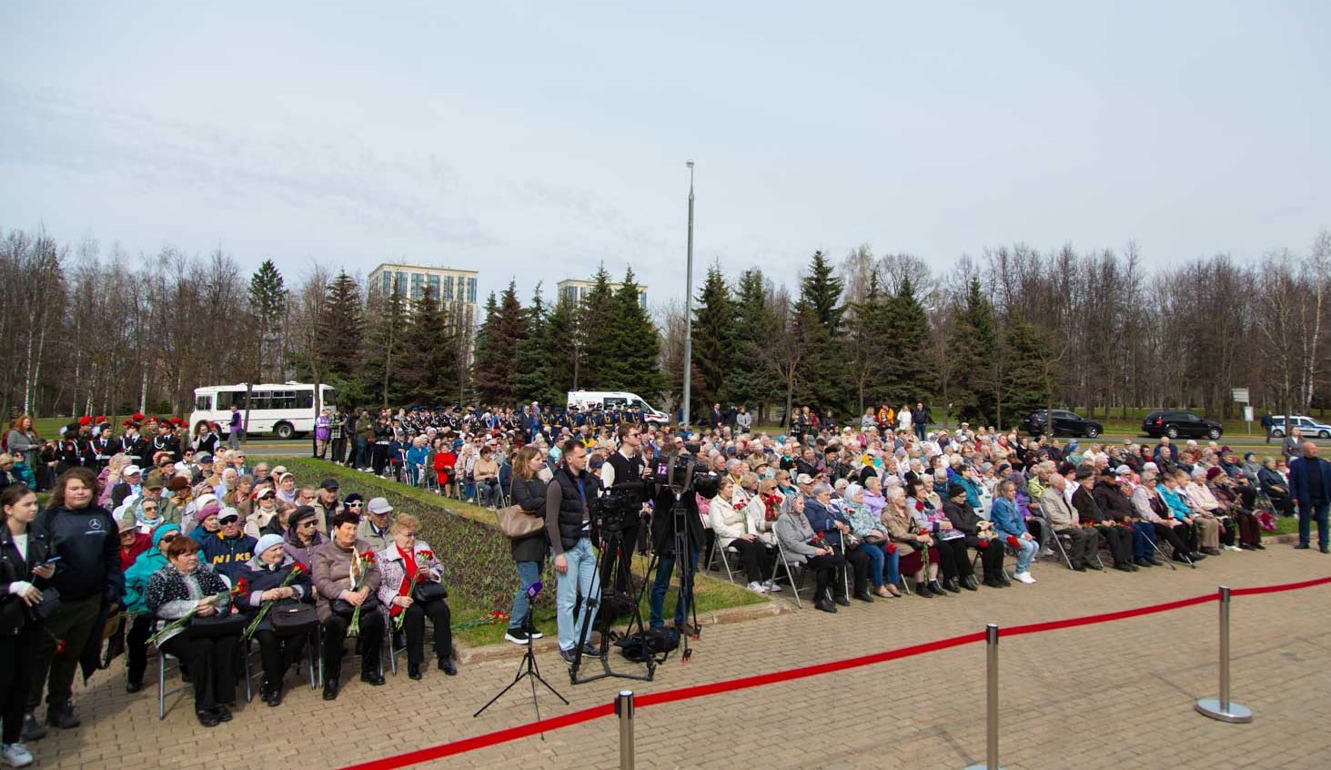 У монумента «Трагедия народов» на Поклонной горе собрались бывшие несовершеннолетние узники фашизма и их родственники, ветераны, представители органов власти и общественных организаций, кадеты, юнармейцы.